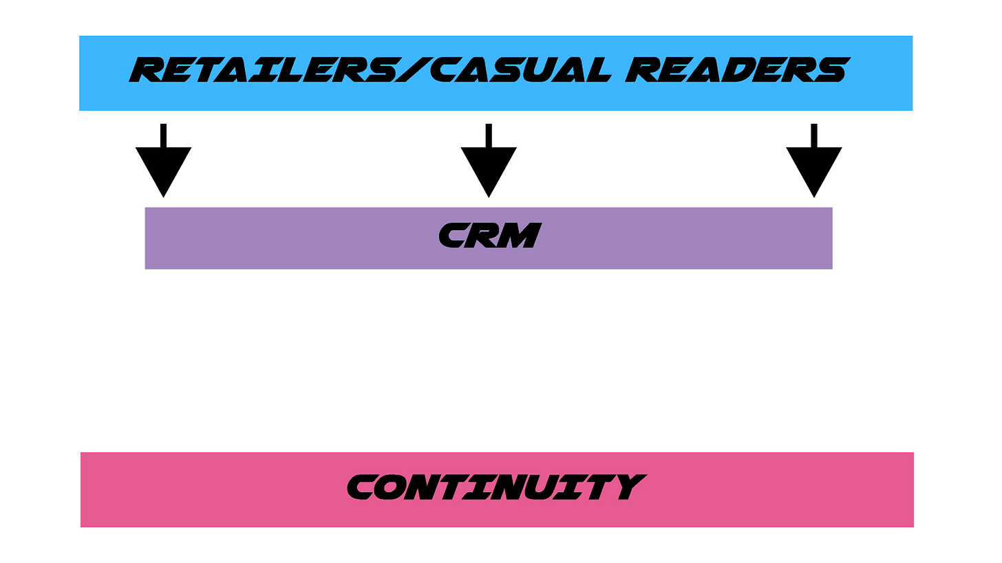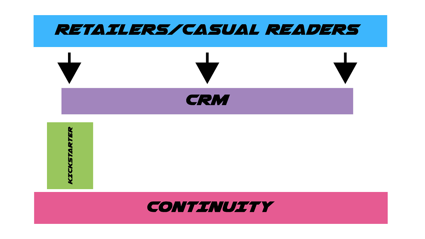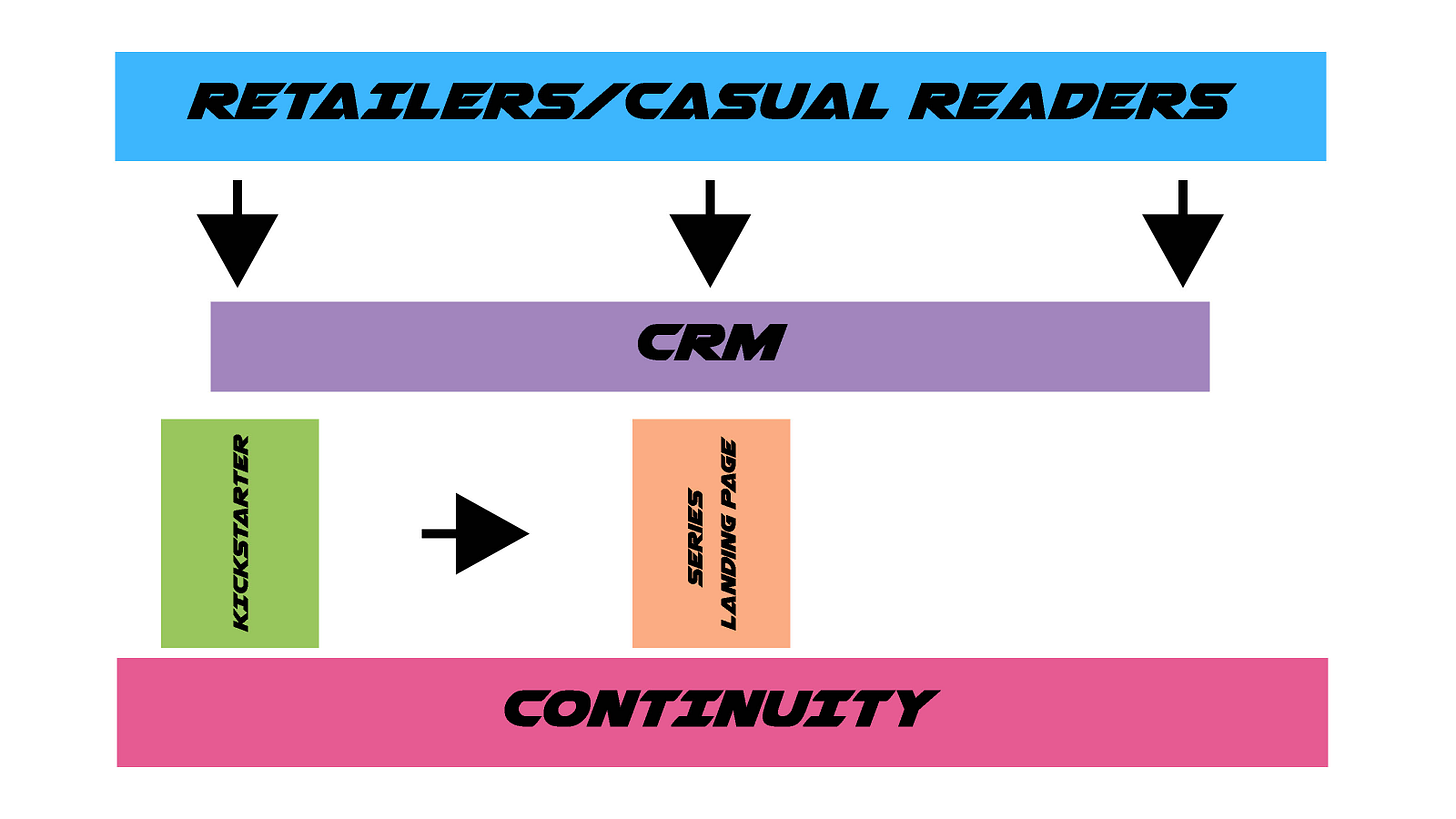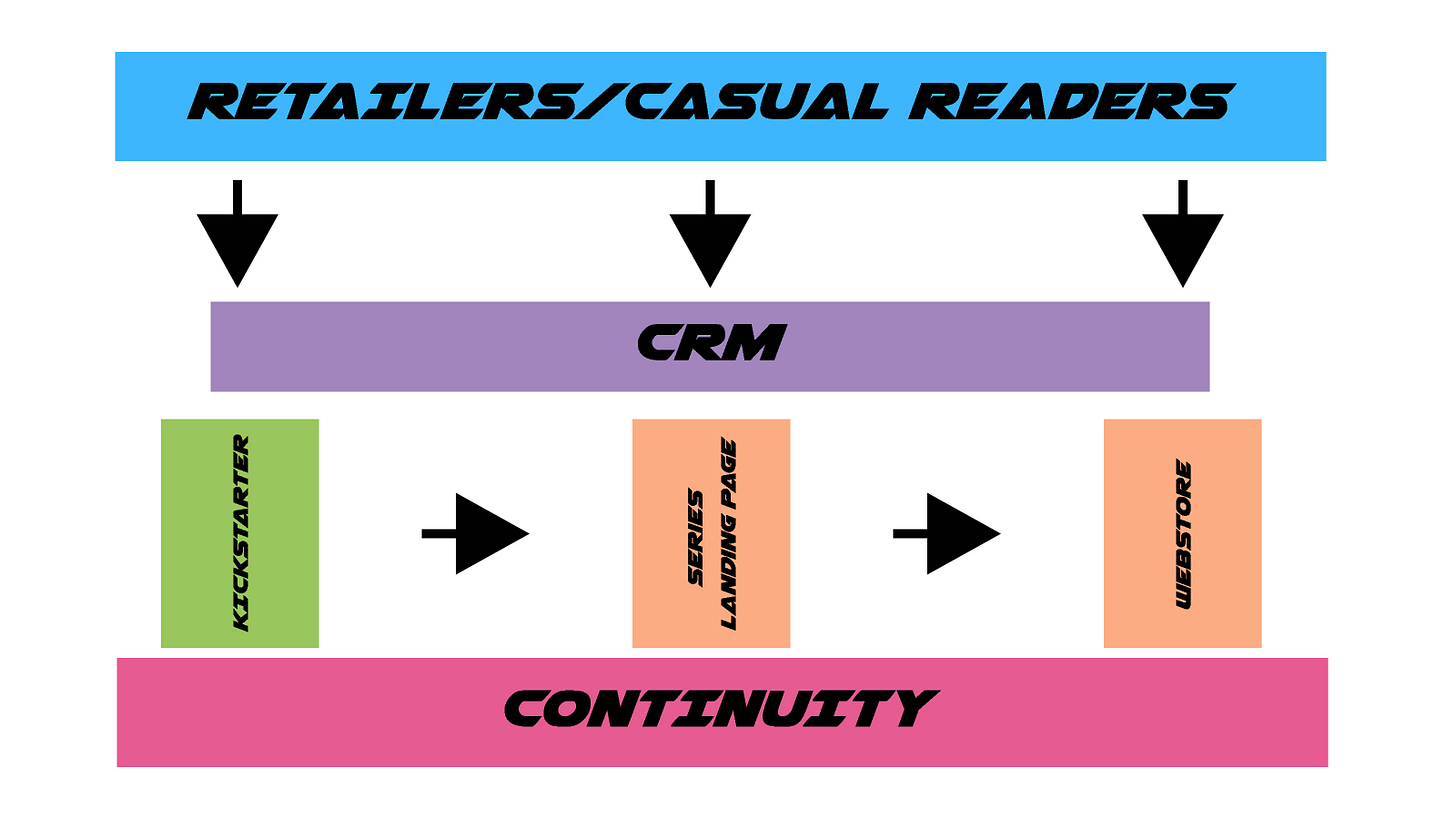 Building your casual reader funnel- Retail sales aren't the end goal. They're a means of customer acquisition. Think of retailer sales as a funnel to convert casual fans into devoted readers. The point is to cast a wide net to find readers and bring them into your ecosystem where you control the customer relationship. You don't need retail sales to turn a huge profit. They just need to work well enough to keep bringing new readers to your door.